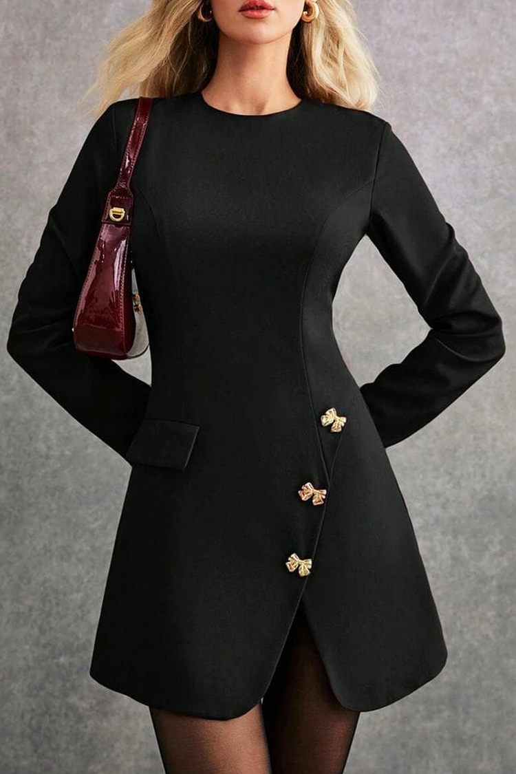 • Haljina ima duge rukave, elegantan kroj, uski dizajn i crnu boju.
