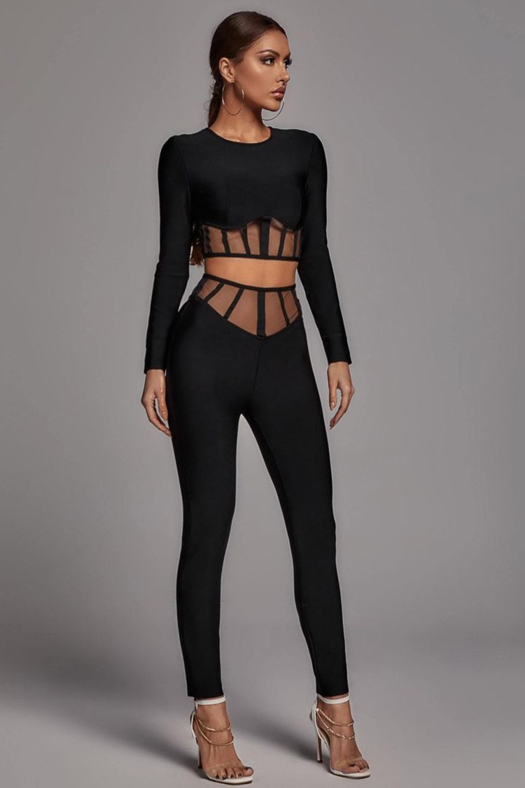 - Bluza ima kratku dužinu, duge rukave i seksi dizajn. Helanke imaju visok struk, efektan dizajn i izrezane delove.