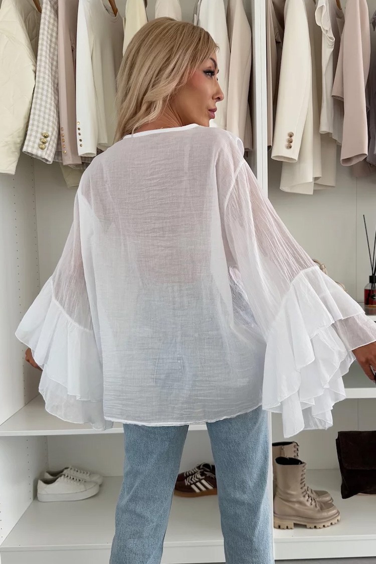 • Elegantna ženska košulja sa stilskim dizajnom u klasičnoj boji.