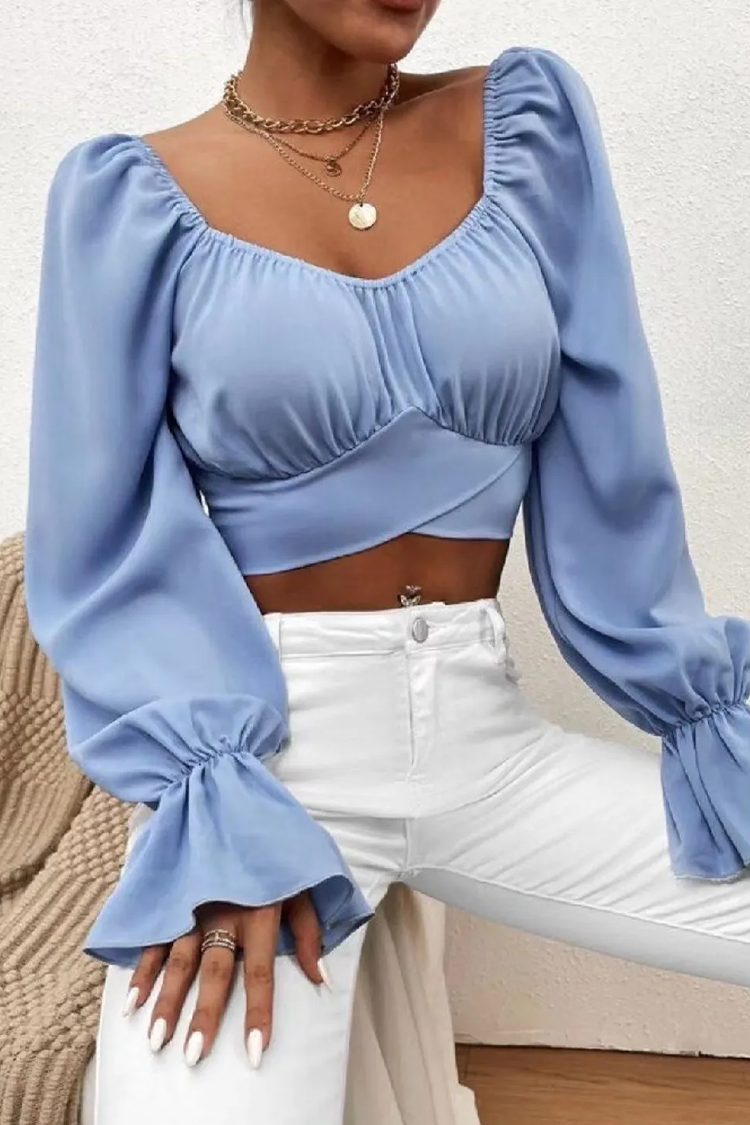 - Model ima seksi dizajn, duge, pufnaste rukave, atraktivan dekolte i skraćenu dužinu.