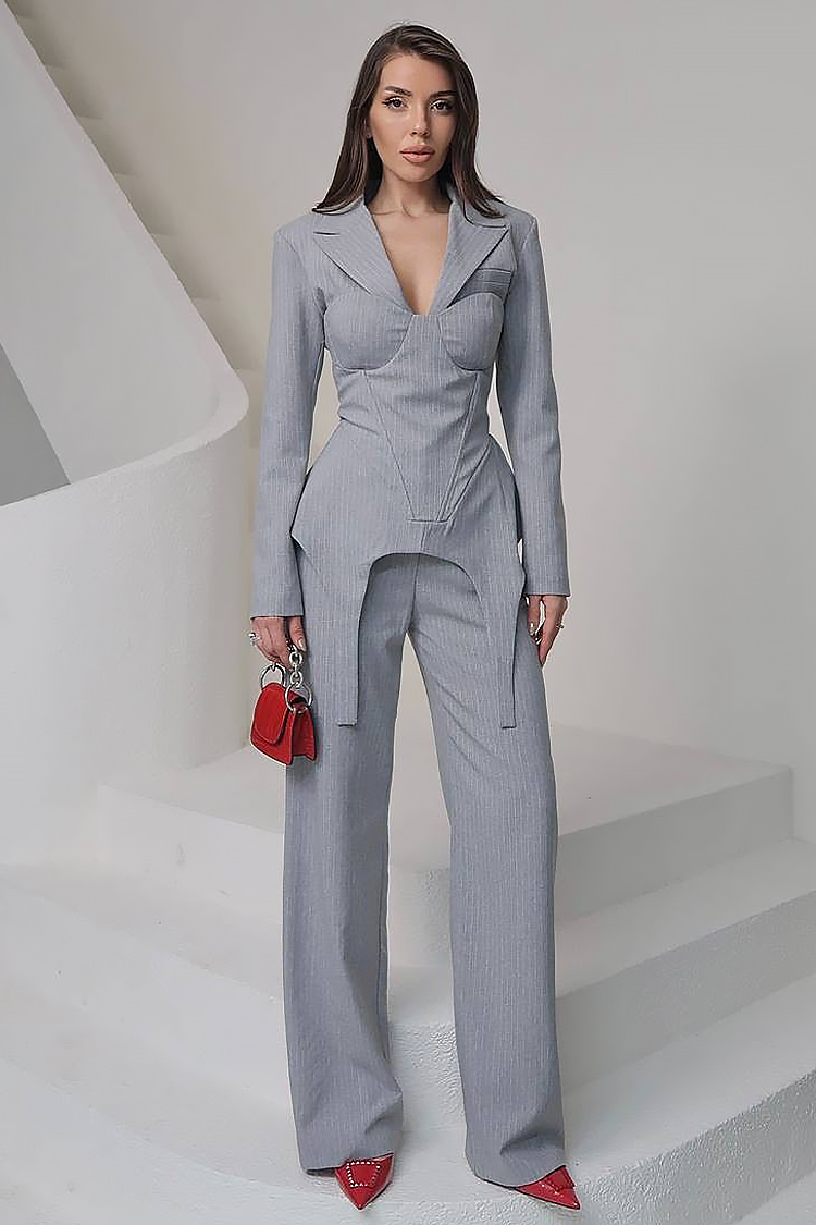 - Sako ima crop dužnu, a pantalone klasičan, ravan kroj.