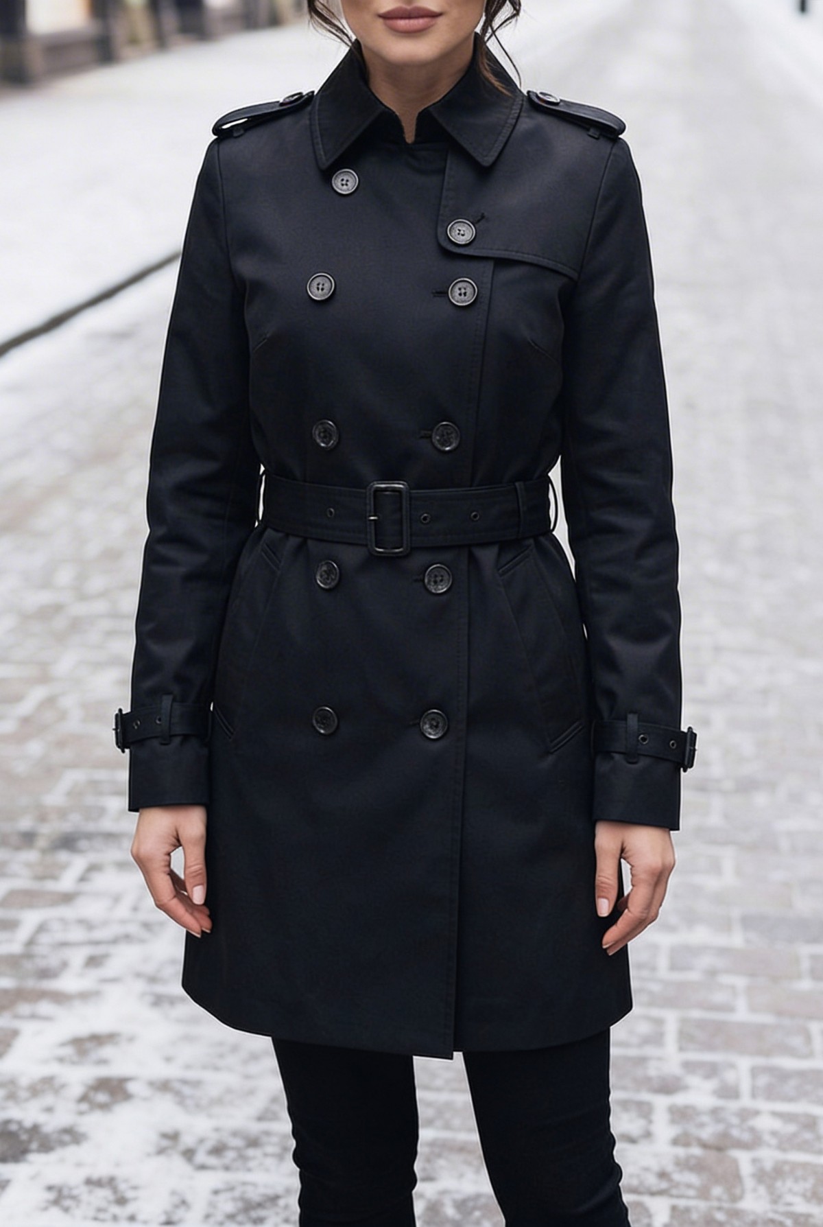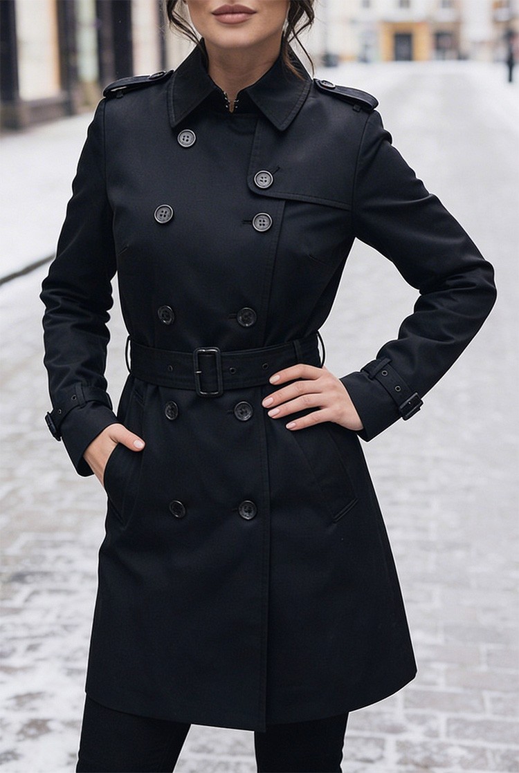 • Stilski mantil sa kragnom i kaišem u crnoj boji koji morate imati u svom garderoberu.