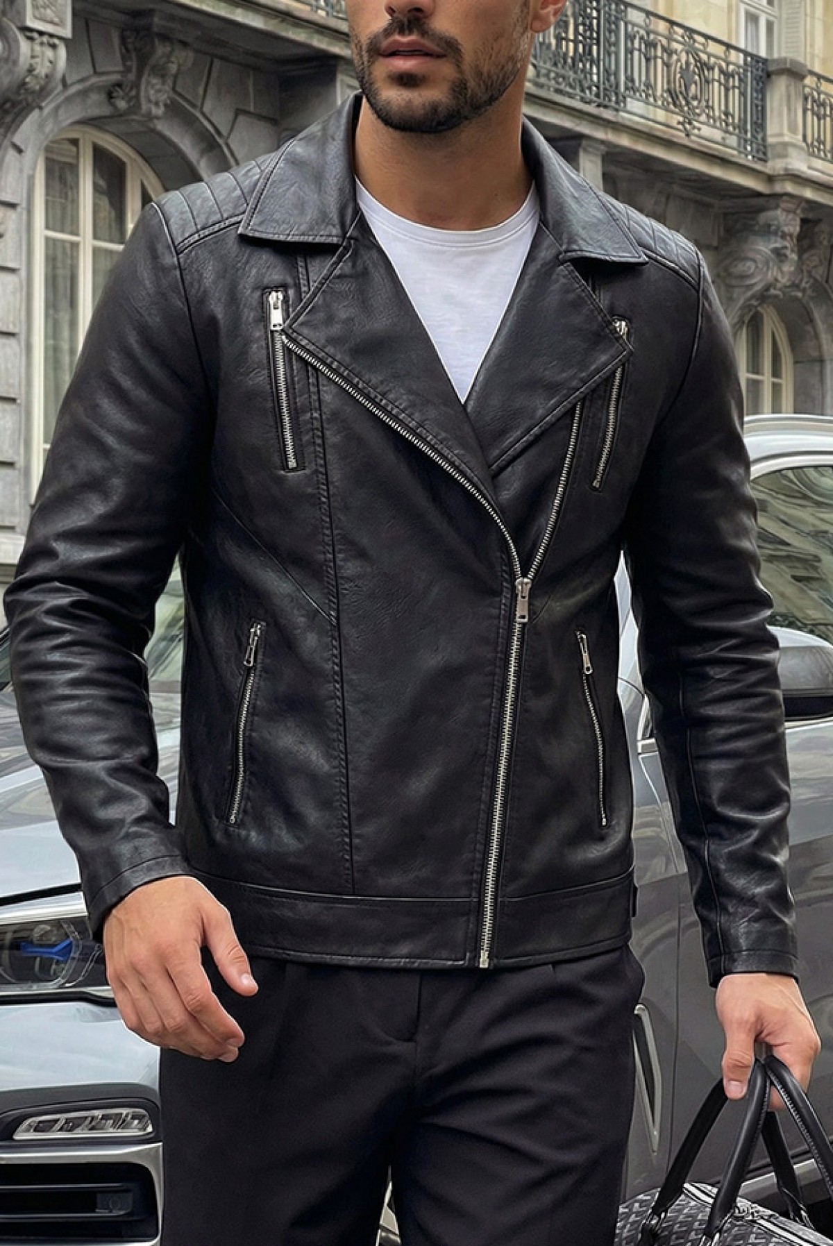 • Muška jakna klasičnog dizajna, sa rajsferšlusima, kragnom i bočnim džepovima.