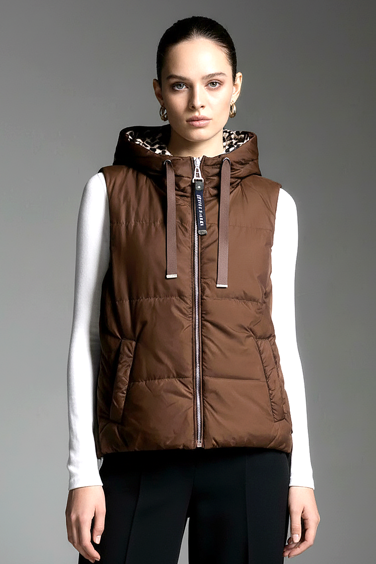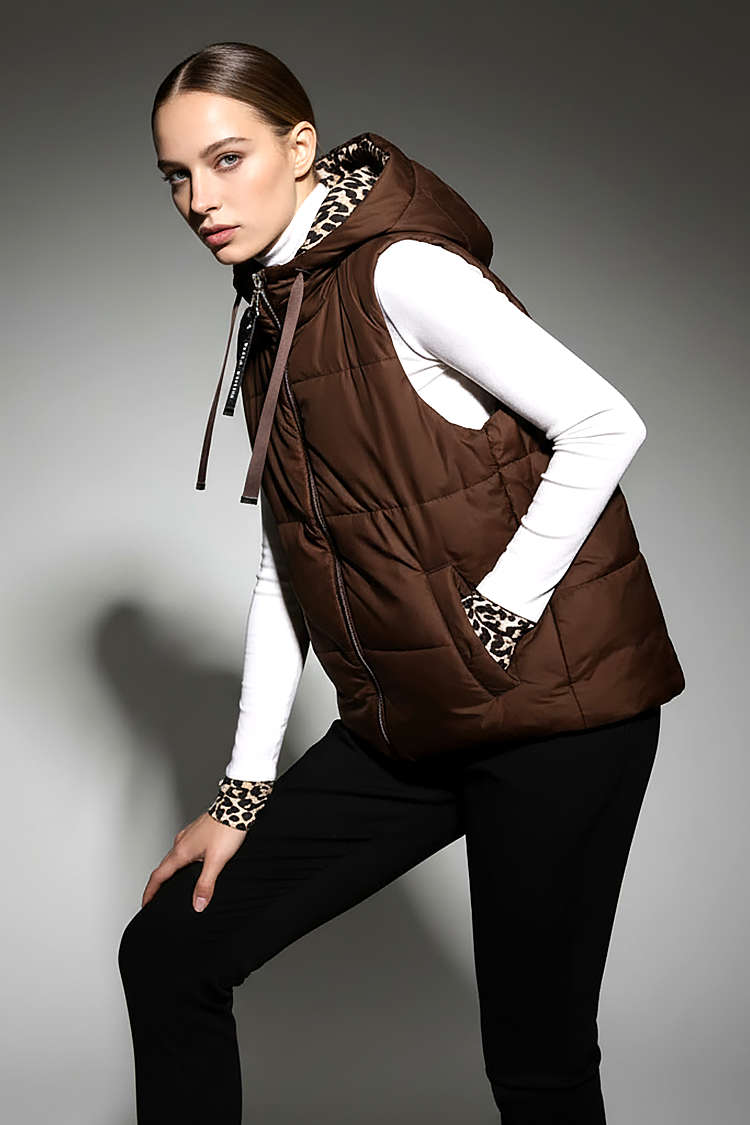 - Prsluk ima klasičan kroj, kapuljaču, rajsferšlus po celoj dužini i postavu sa leopard printom.