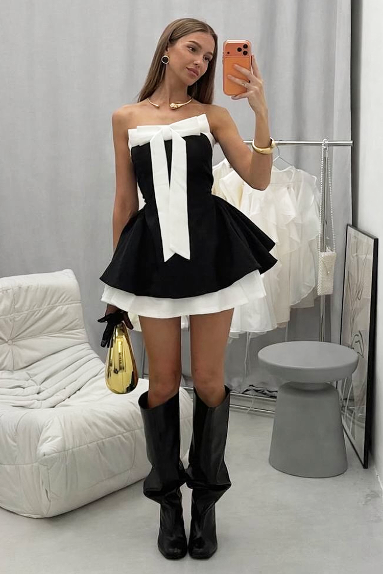 - Da biste privukli sve poglede, izaberite ovu kratku haljinu neverovatnog dizajna u klasičnim bojama.