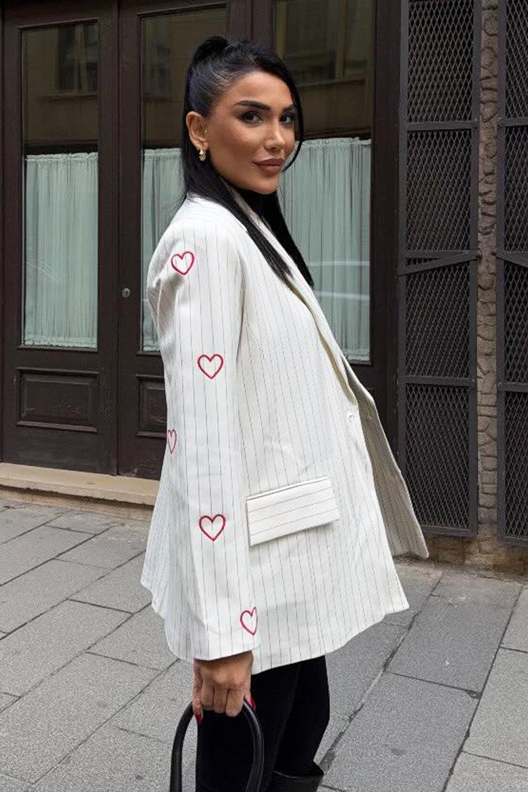 - Spojite stil sa udobnošću! Model ima oversize dizajn, kragnu, džepove, prugasti i dezen srca.