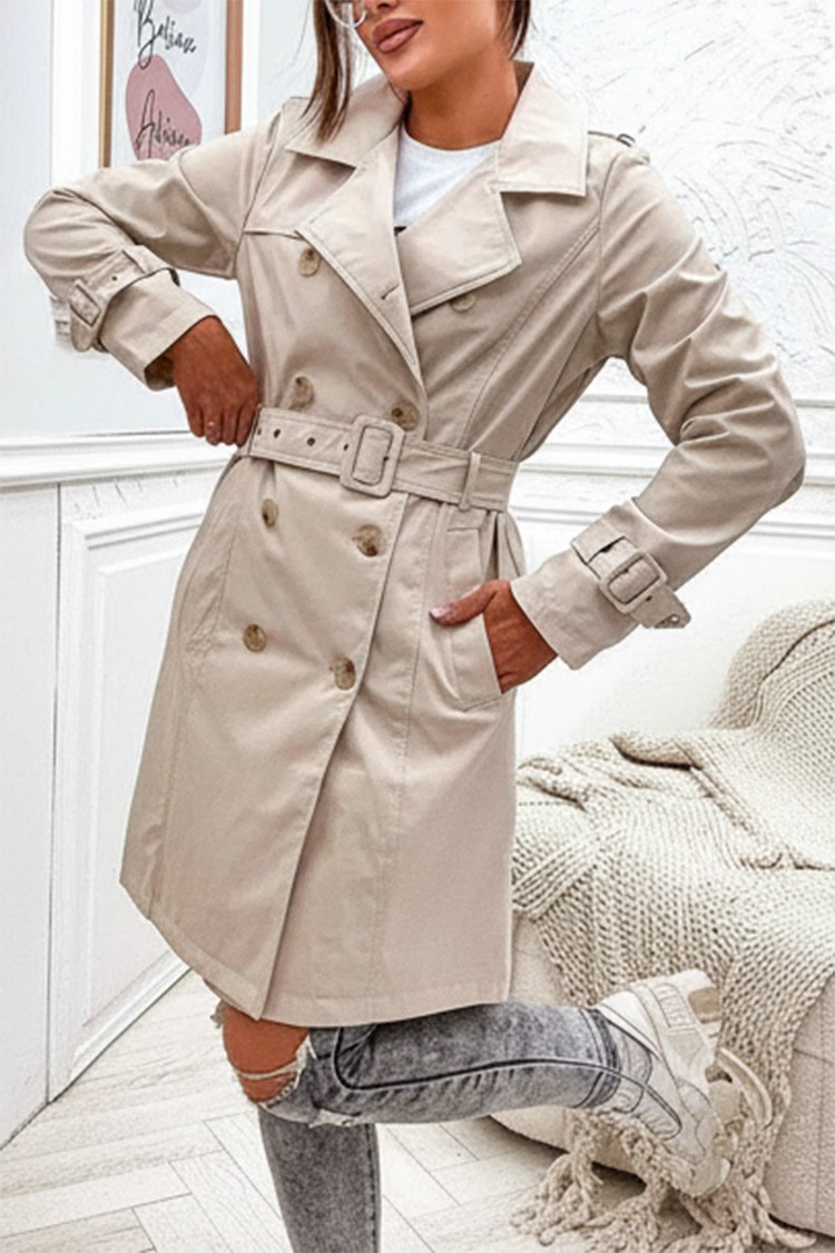 - Osećaćete se udobno u njemu! Model ima klasičan kroj, dvoredno kopčanje i kaiš.