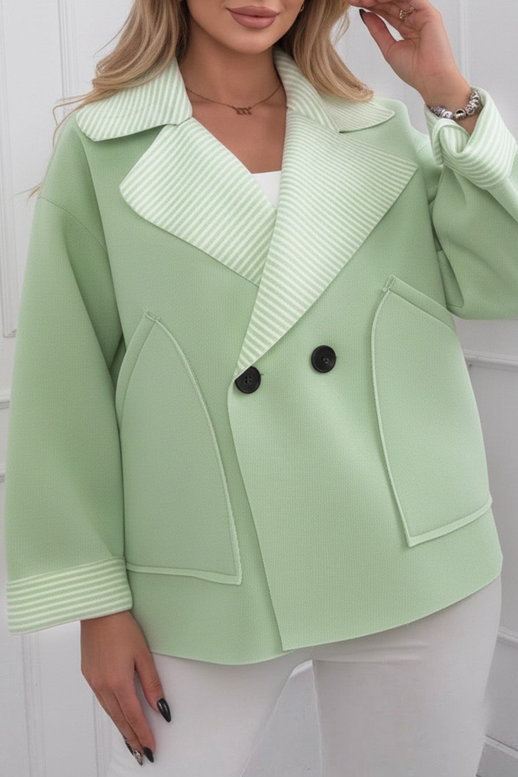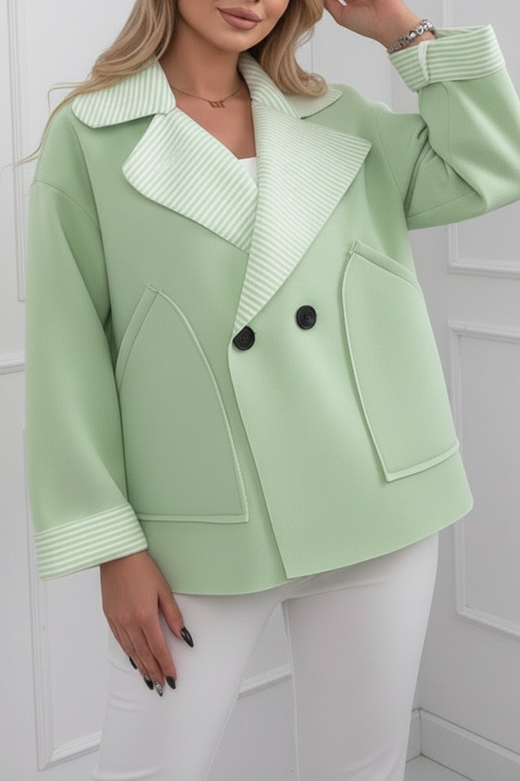 • Model ima kratku dužinu, bočne džepove i dugmad na prednjoj strani.