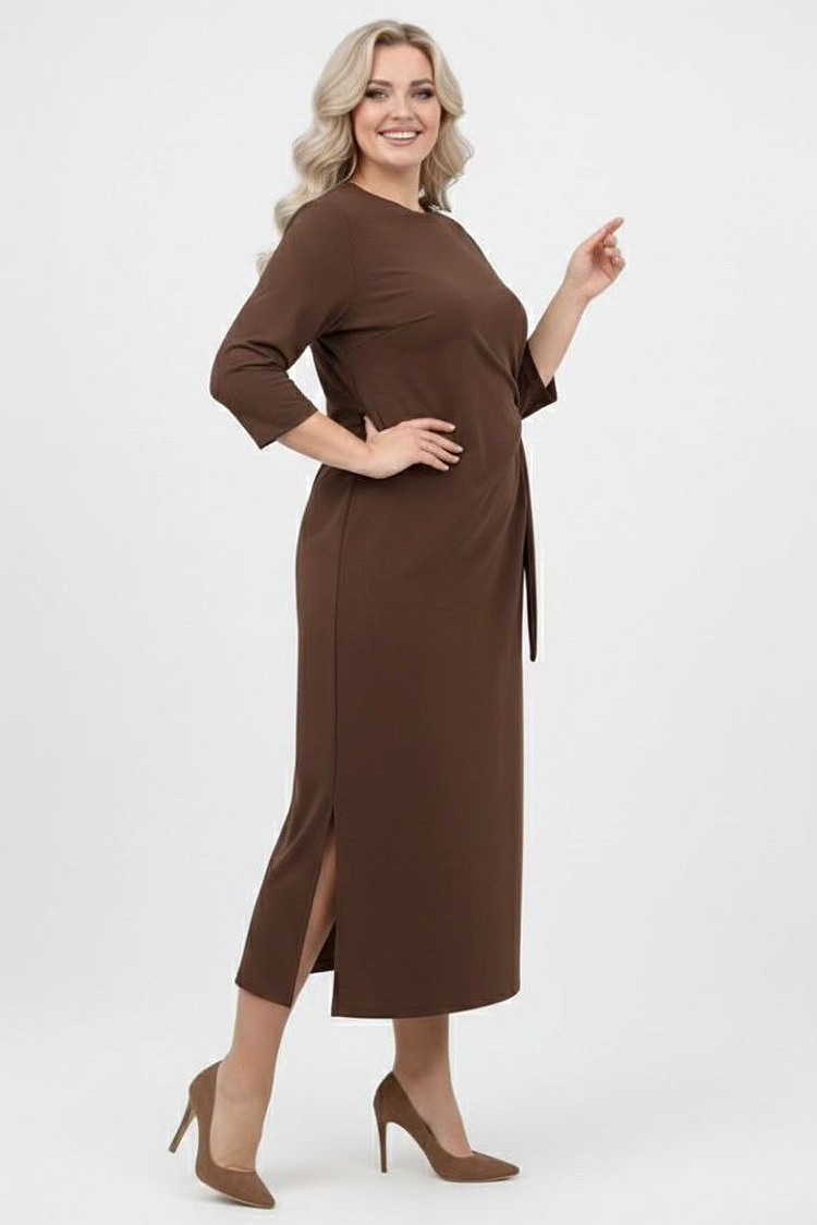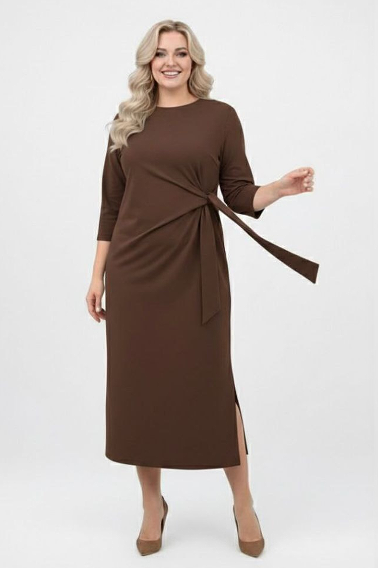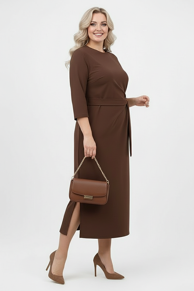 • Midi haljina sa jednobojnim dezenom i stilskim dizajnom, pogodna za razne modne kombinacije.