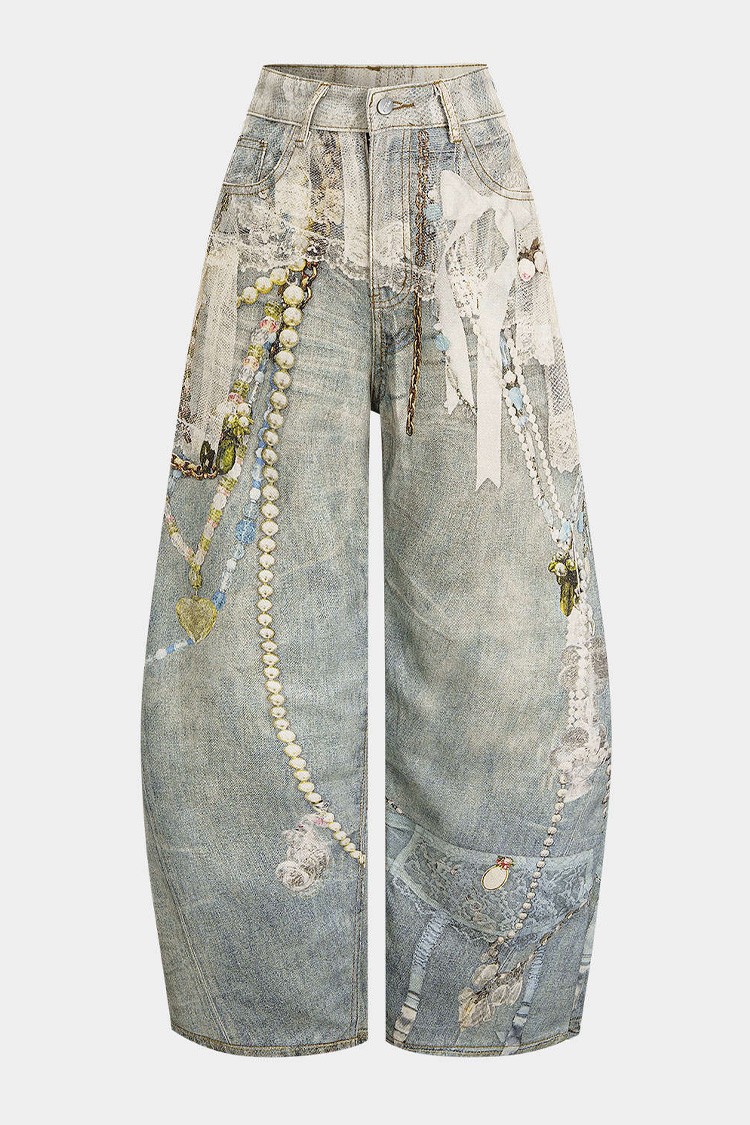 - Model ima nizak struk, širok kroj, džepove i atraktivan print po dužini.
