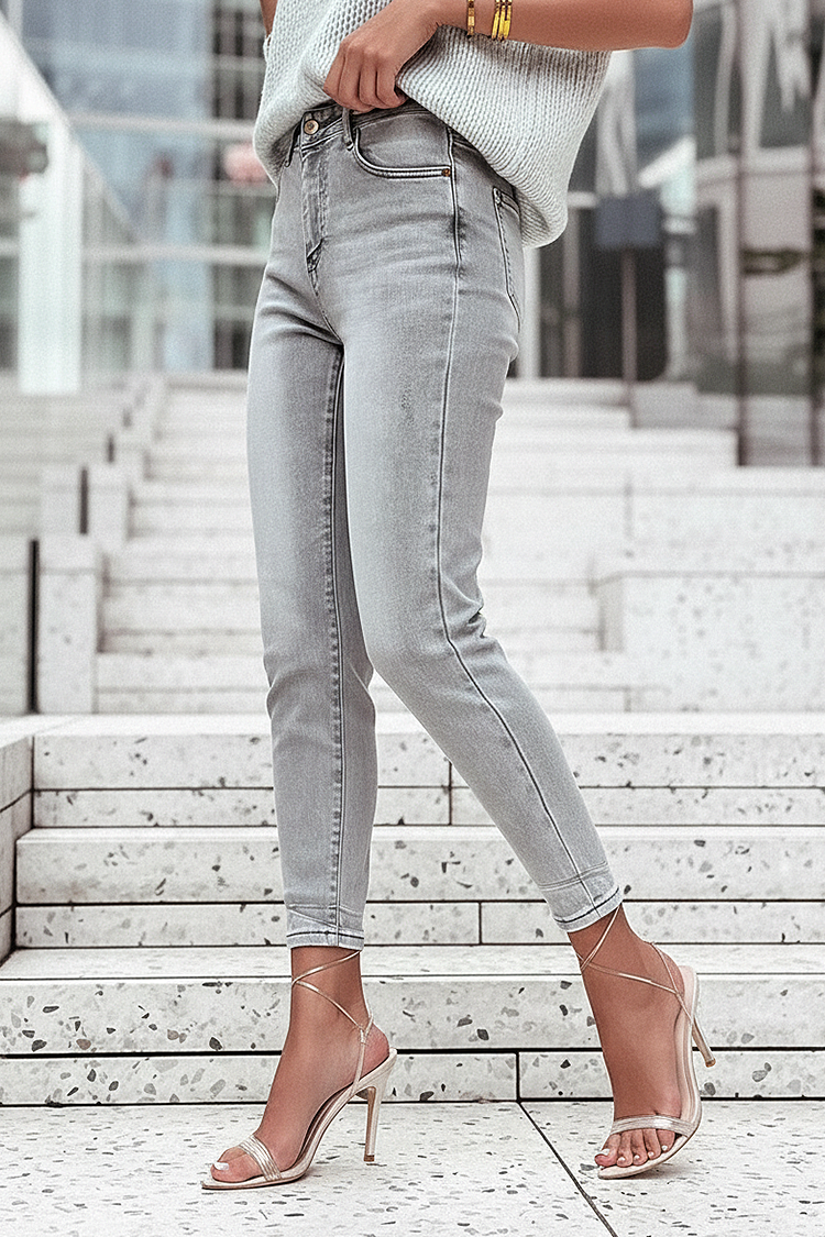 • Model ima visok struk i uski kroj, ima praktične džepove.