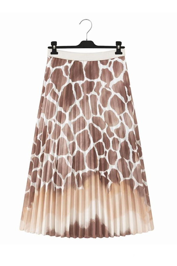 - Model ima visok struk, plisiranu tkaninu i atraktivan, animal dezen.
