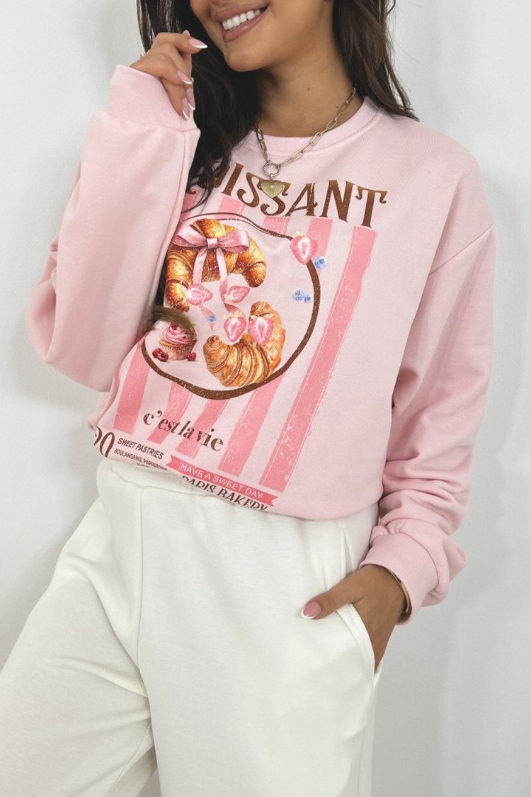 • Model ima duge rukave, slobodan kroj i efektan, šareni print na prednjoj strani.