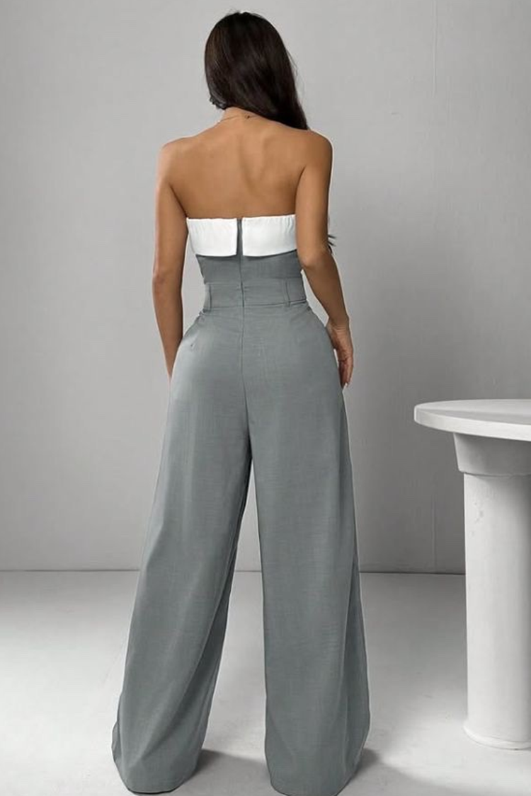 - Model ima udoban kroj, široke nogavice i seksi dekolte sa belim detaljima.