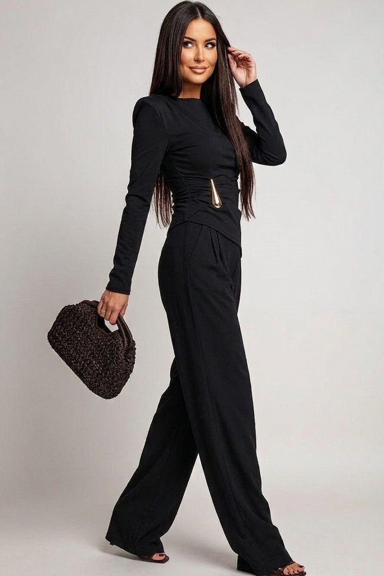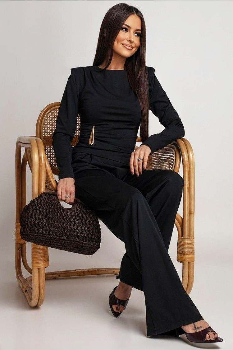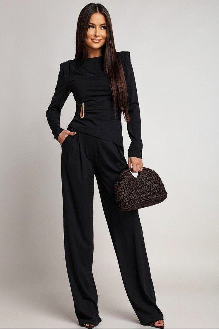 - Dvodelni svakodnevni set koji se sastoji od bluze i pantalona u klasičnoj boji.