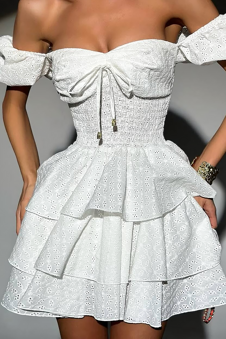 - Model ima kratku dužinu, seksi dekolte, efektnu tkaninu i spuštene rukave.