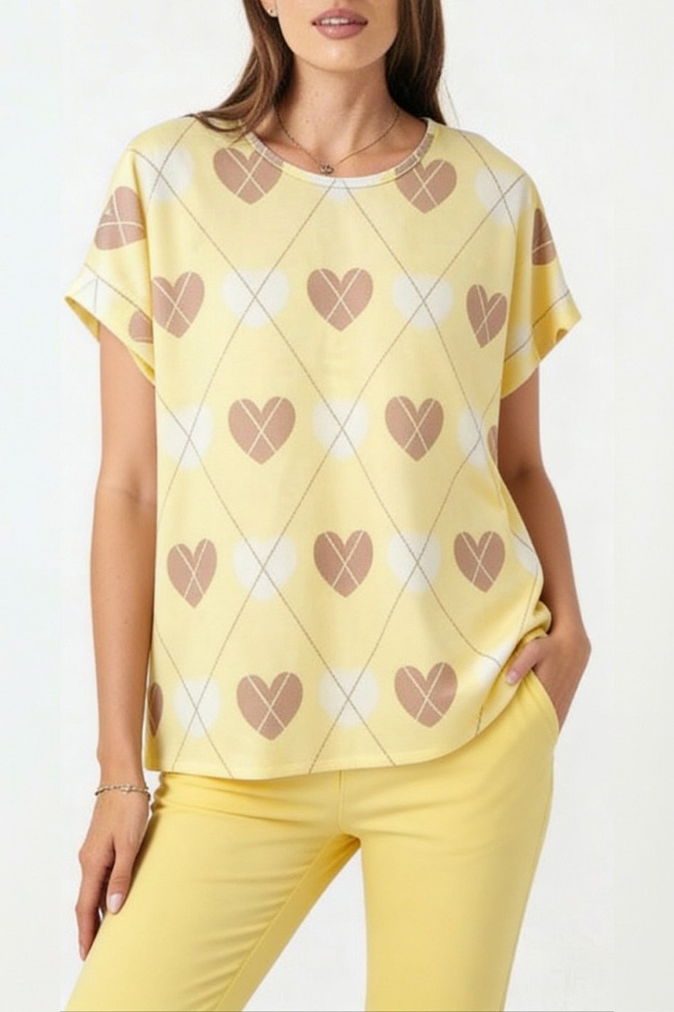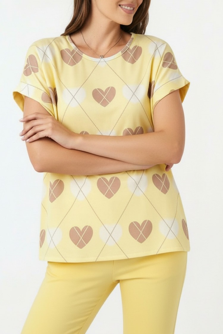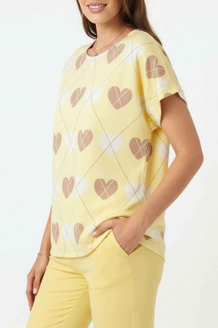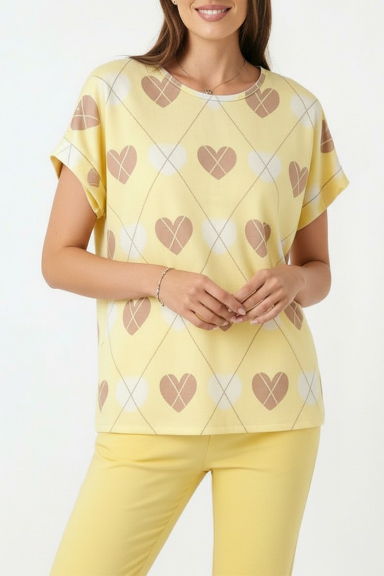 - Majica ima klasičan kroj, kratke rukave i trendi dezen.