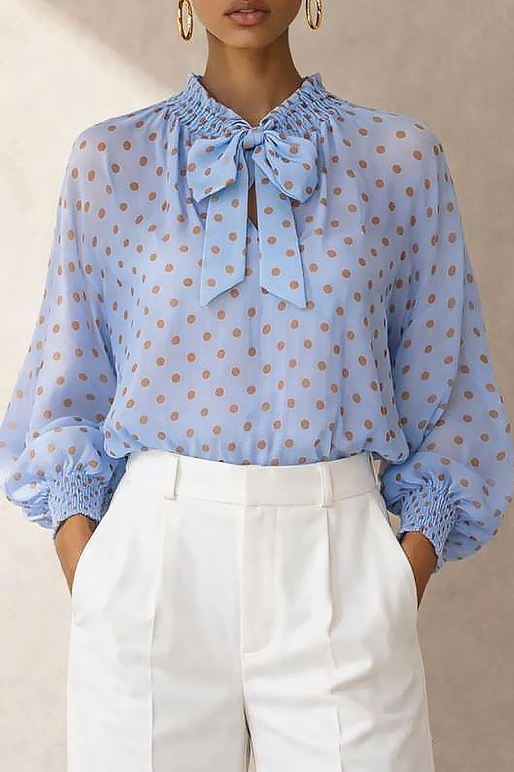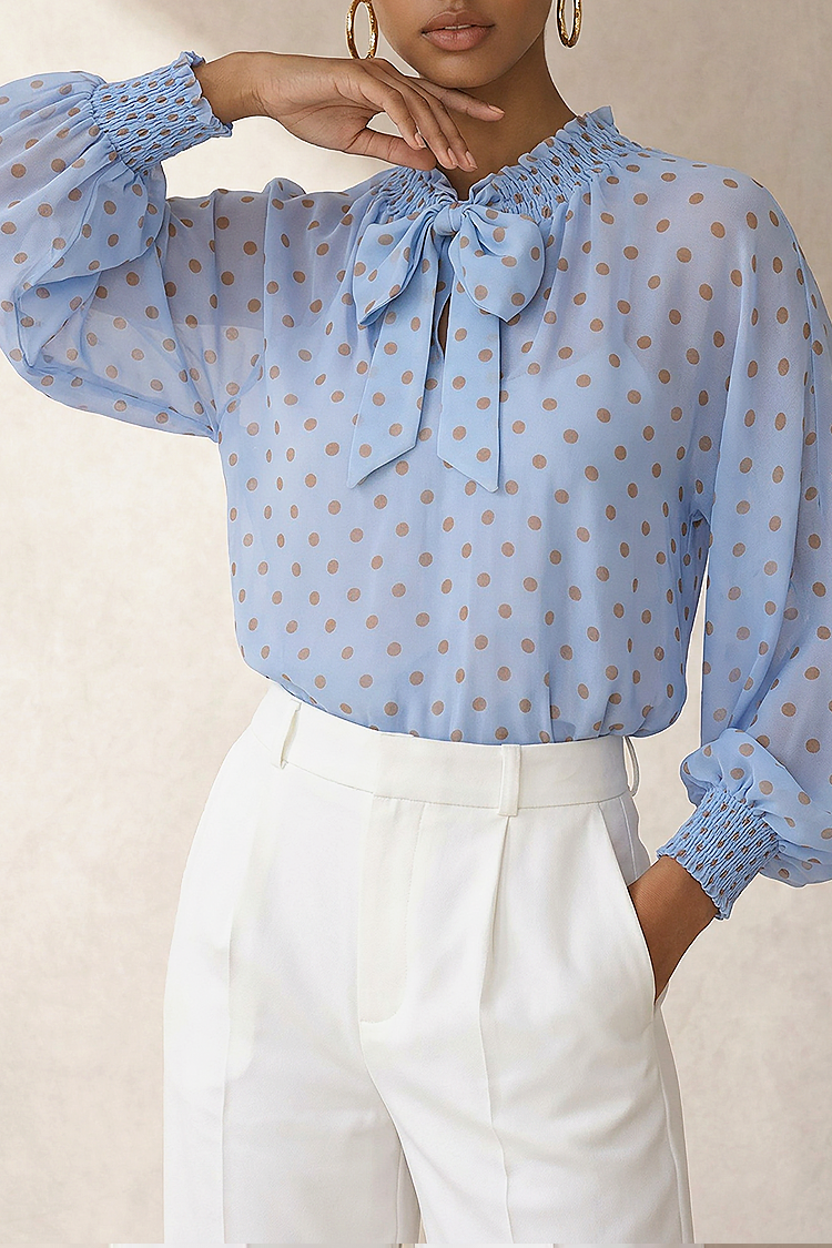 - Model ima duge rukave, koketan dizajn i atraktivan print na tufne i mašnu na dekolteu.