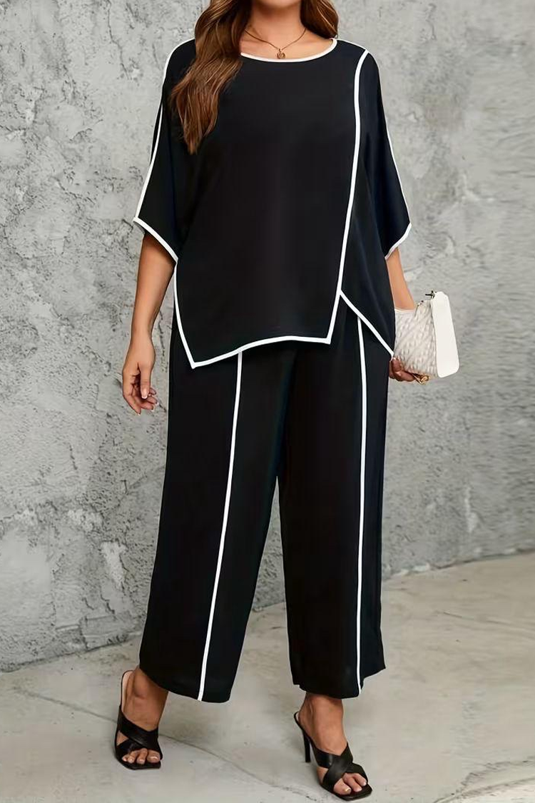 - Pantalone imaju visok struk, prednji rub i ravan kroj.