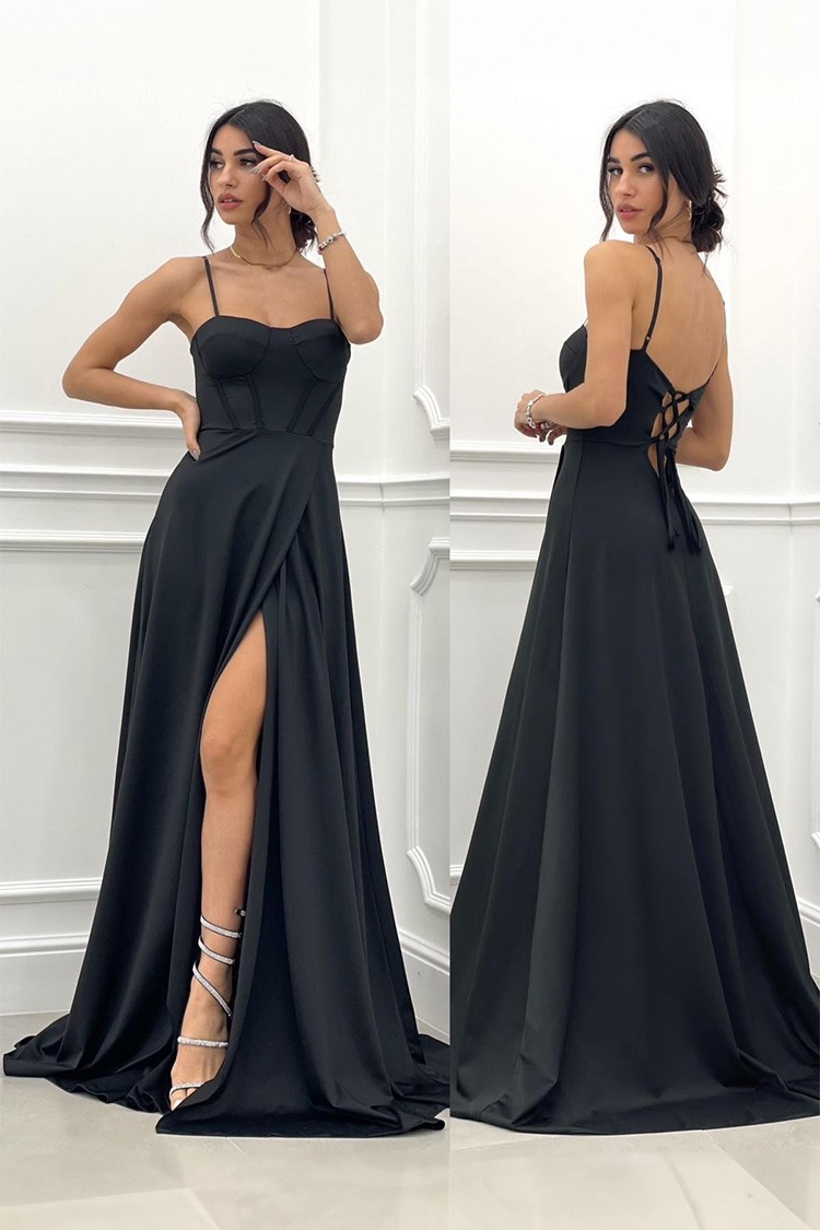 - Model ima klasičan kroj, crnu boju, tanke bretele i efektna leđa.
