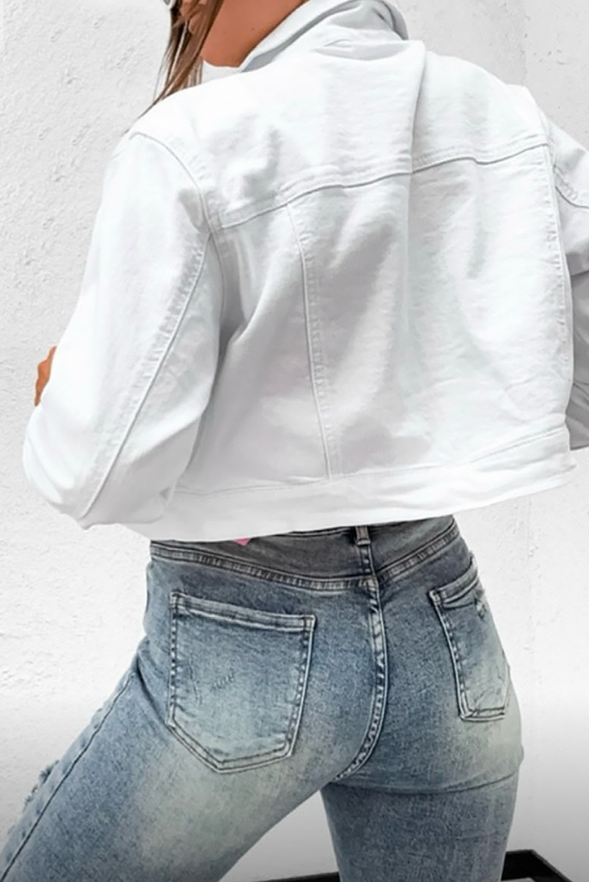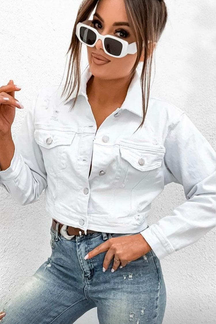 • Upotpunite svoju odeću jedinstvenom ženskom teksas jaknom u beloj boji.