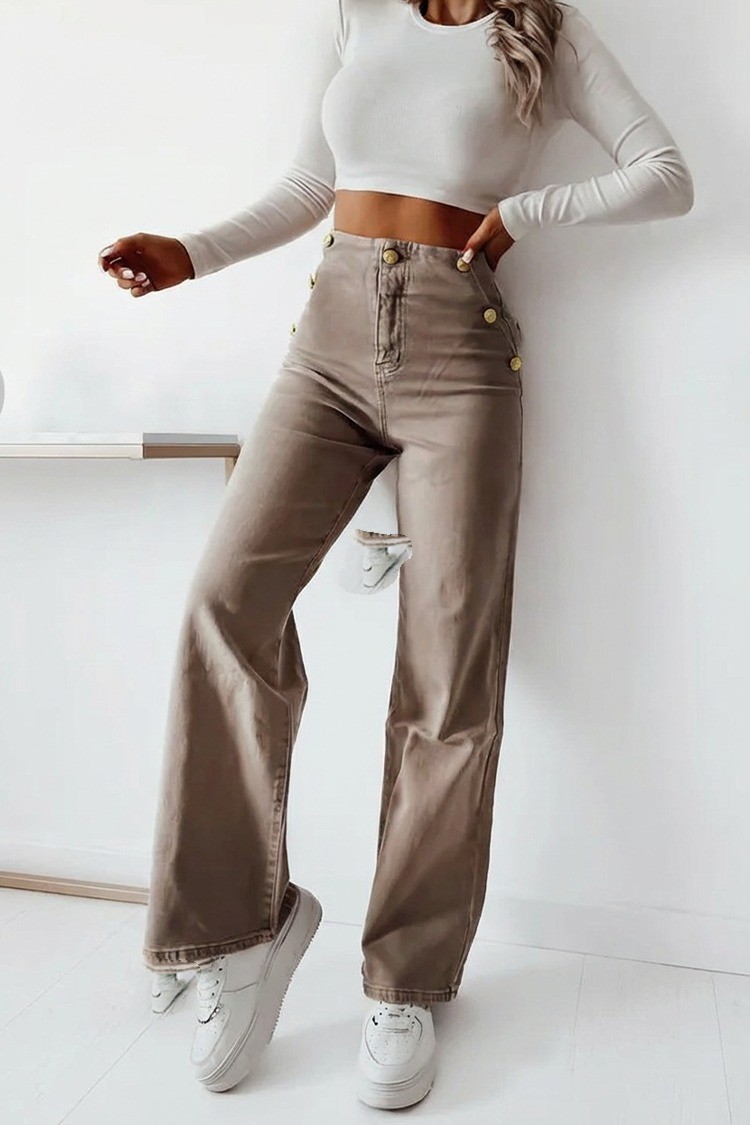Ove elegantne farmerke sa zlatnim dugmadima savršen su izbor za žene koje vole moderan kroj, visok struk i ženstvene detalje.