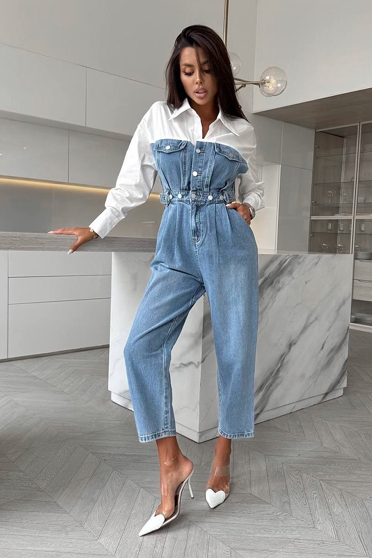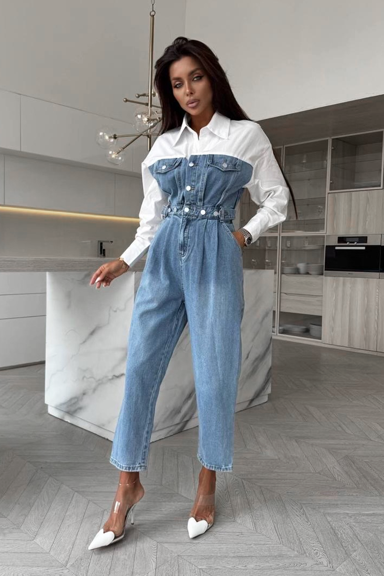- Teksas kombinezon atraktivnog dizajna, pogodan za svakodnevni trendi izgled.