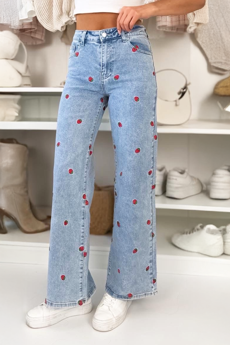 - Model ima visok struk, udoban kroj, bočne džepove i atraktivan print jagode.