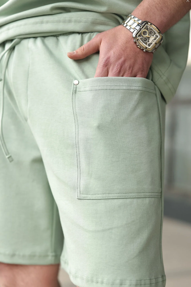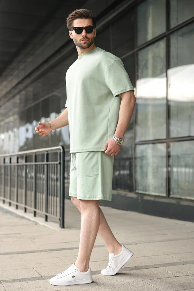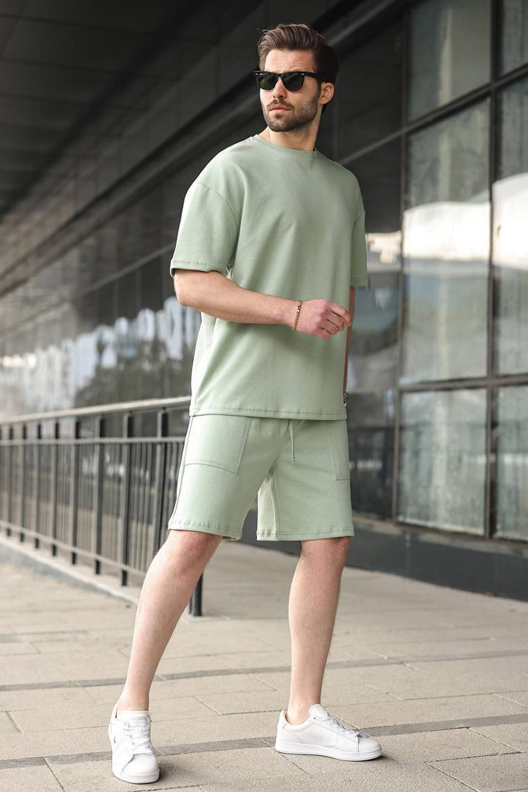- Muški svakodnevni dvodelni komplet u boji, koji se sastoji od majice i šortsa.
