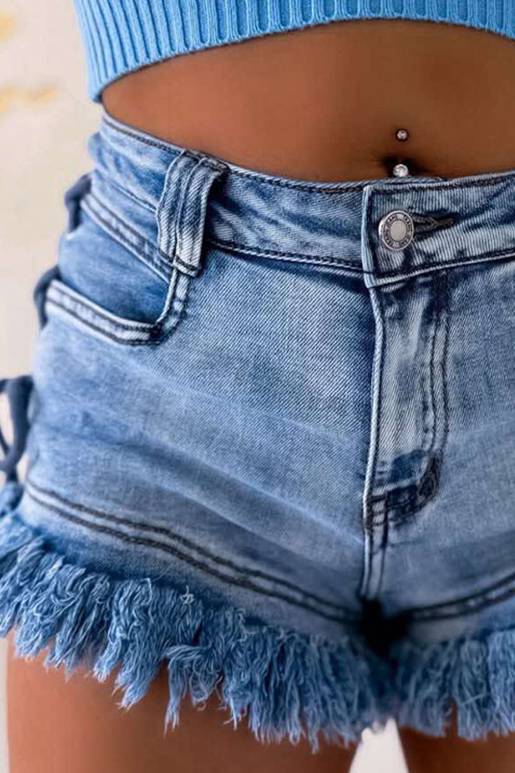 - Ženski šorts, basic model, u svetlo plavom dezenu, pogodan za svakodnevni život ili šetnju.