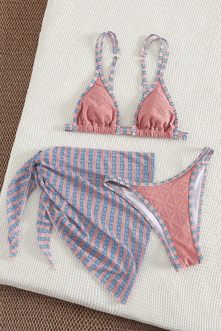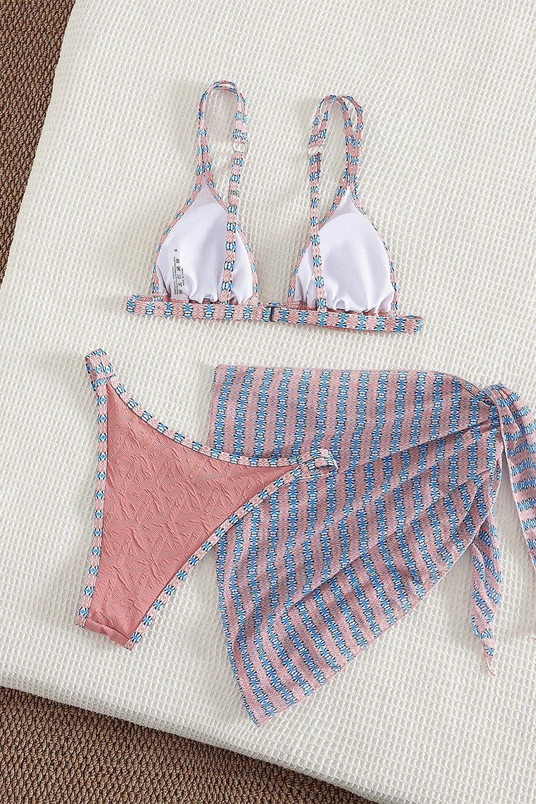 - Moderan komplet za plažu koji uključuje dvodelni kupaći kostim i pareo.