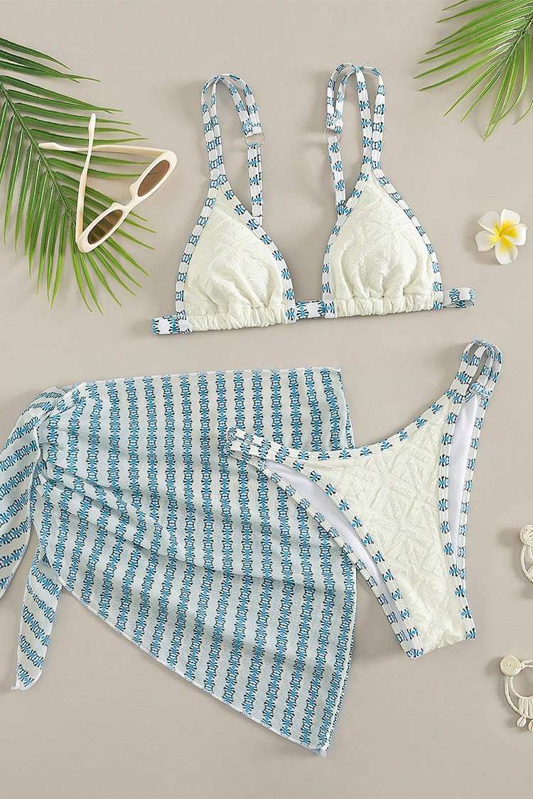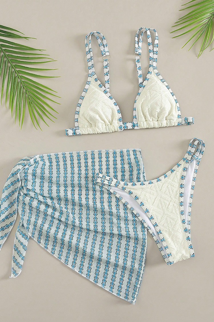 • Moderan komplet za plažu koji uključuje dvodelni kupaći kostim i pareo.