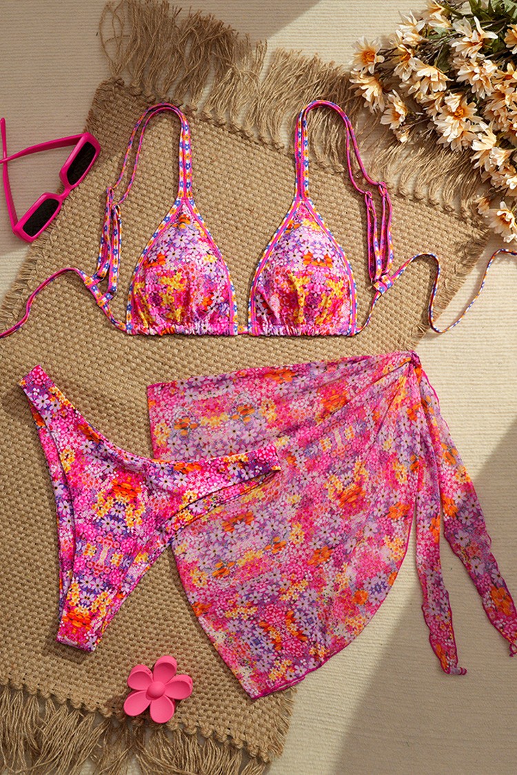 - Moderan set za plažu koji uključuje dvodelni kupaći kostim i pareo.