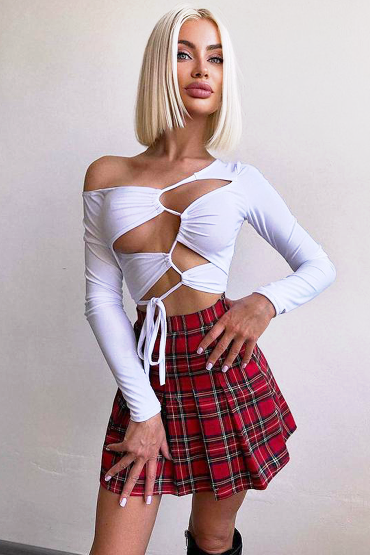 • Suknja ima crveni karirani dezen, mini dužinu, visok struk i seksi dizajn.