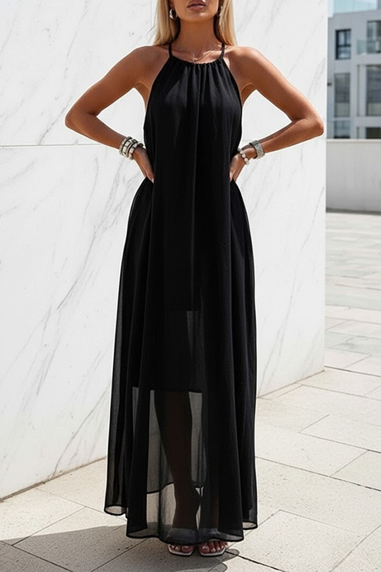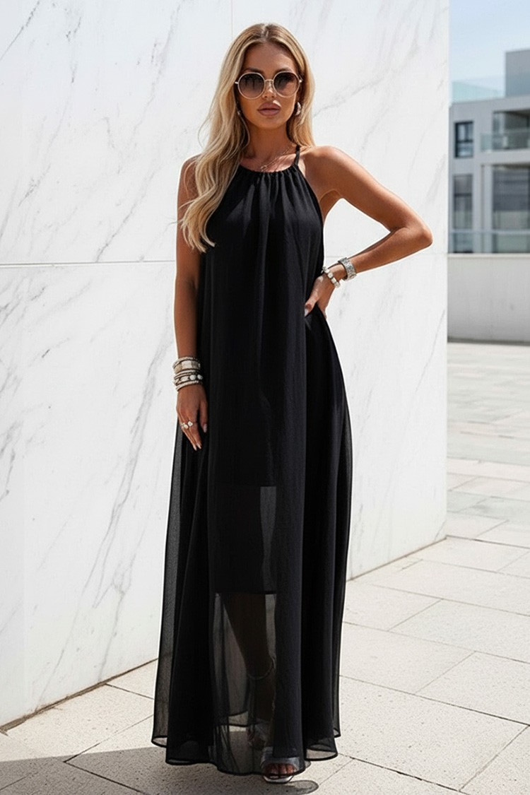 • Haljina ima udoban i širok kroj, tanke bretele, klasične boje i odgovara svakom tipu figure.