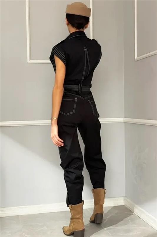 - Model ima metalna zlatna dugmad, seksi kroj, dva praktična bočna džepa i ukrasne džepove na prednjoj strani, koji se završavaju kaišem od istog materijala.