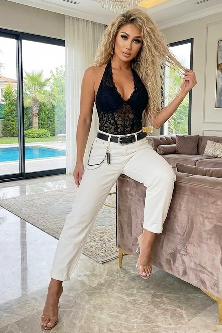 Model je visok 170 cm i pozira u veličini 31.