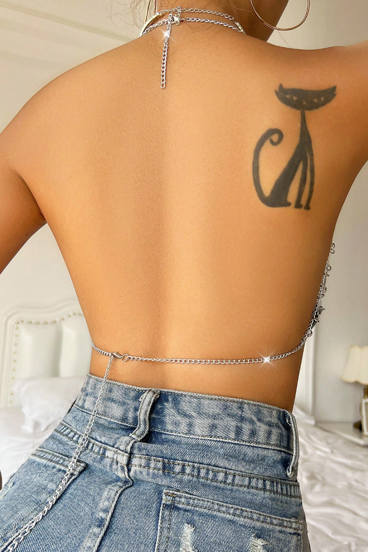 - Trouglasti oblik oblikuje i ističe poprsje, a nežni lanci ocrtavaju finu konturu oko tela. Duboki dekolte pomaže da se maksimizira zavodljiv sjaj.