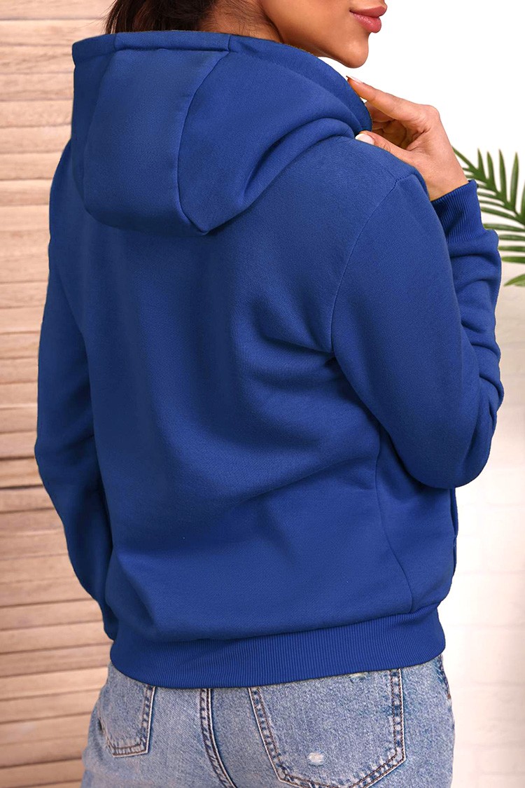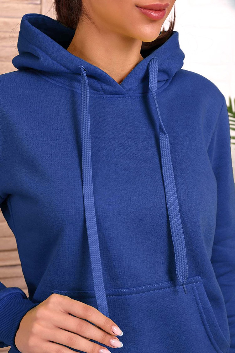 - Praktična ženska dukserica jednobojnog dezena sa kapuljačom i vezicama u istom tonu.