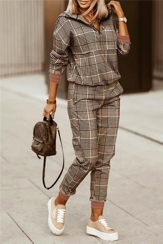 - Aktuelna ponuda za vašu modernu svakodnevnicu - dvodelni ženski komplet sa efektnim kariranim dezenom.